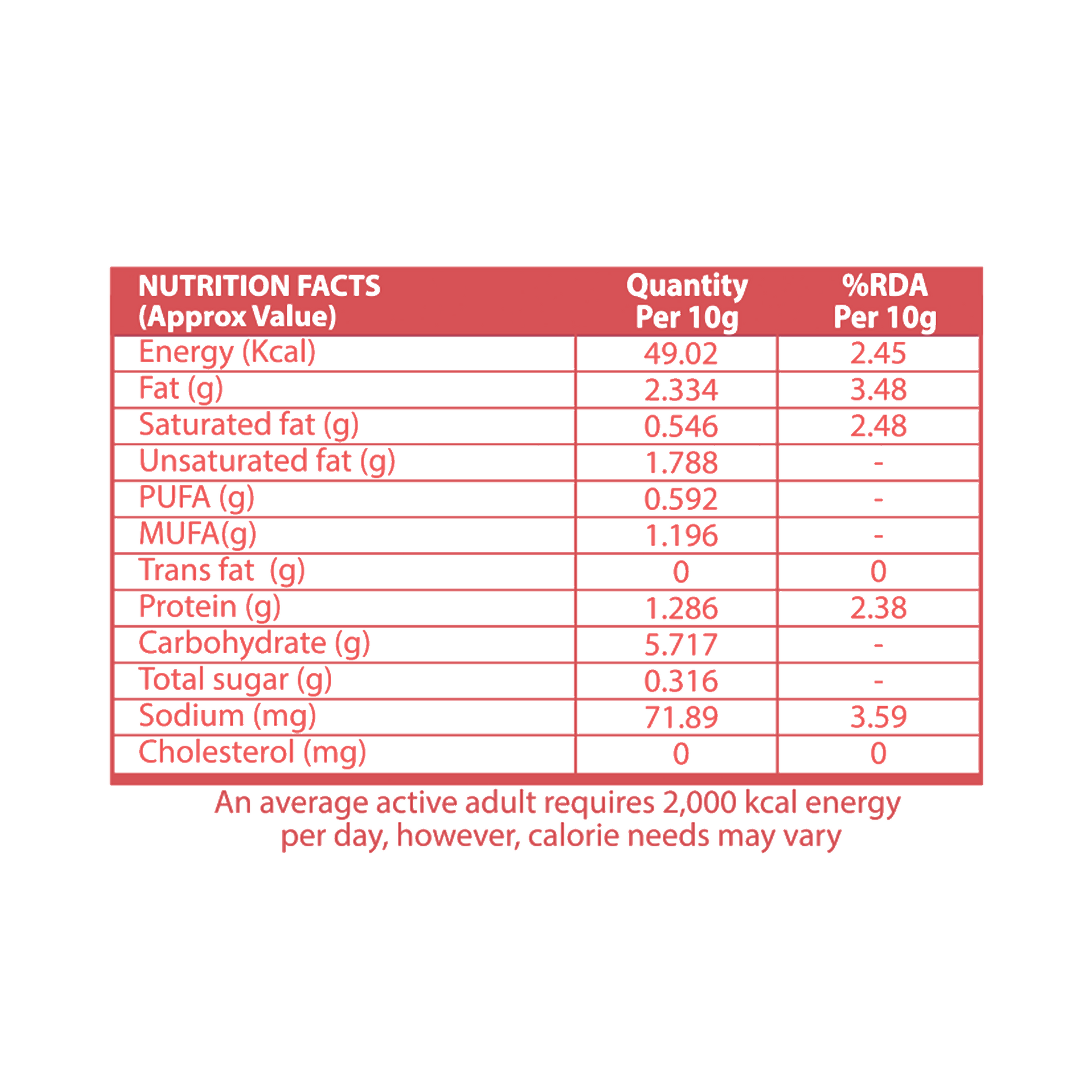 - Magic Masala Seasoning (Maltodextrin, Dextrose, Sugar, Spices and Condiments)