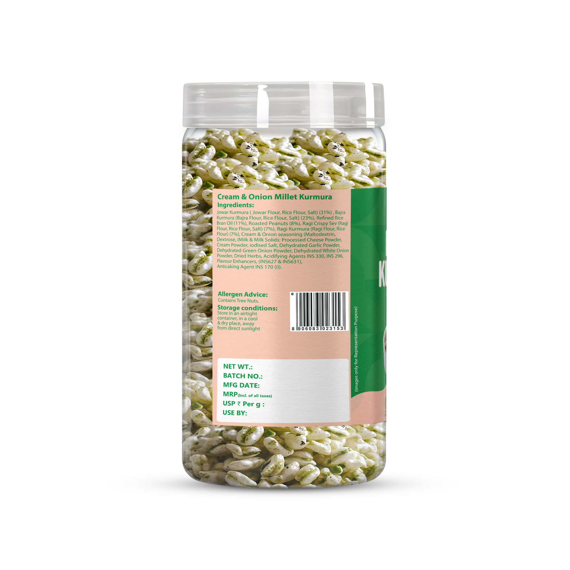Introducing India's First Flavored Millet Kurmura - where the beloved cream and onion meets the wholesome goodness of millet puffs!